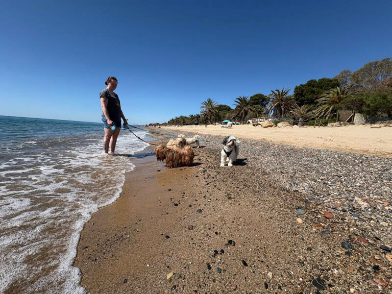 In de middag kwam de zon er alweer goed bij. Dus zijn we naar het strand gegaan. Dat was een goede 20 seconden lopen en we waren er al. De honden hebben het naar hun zin gehad in het zand. In de middag hebben we nog een aantal supermarkten verkend.