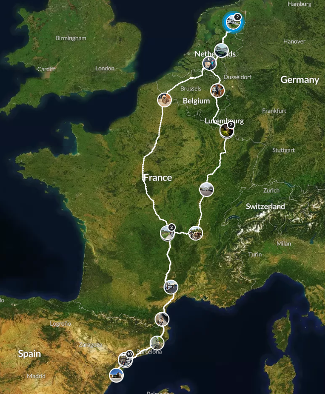 We zijn aangekomen op de plek waar we gaan overnachten. We staan op een parkeerplaats vlak naast het Franse dorp Rodemack. De parkeerplaats staat vol met campers, maar er is zeker nog genoeg plek voor een auto met caravan. De honden gaan nog even een rondje lopen en dan gaan we direct slapen. Morgen een hoop kilometers te gaan.