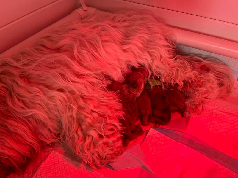 Een uurtje later was daar de volgende pup een reutje. Daarna volgende de rest van de pupjes.