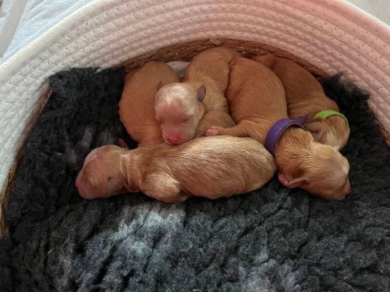 3 teefje en 3 reutjes. 1 lief klein meisje heeft het niet gered. Dit is voor ons de eerste keer dat een pup het niet heeft gered. Het is heel verdrietig maar die dingen gebeuren helaas ook. Maar de rest van de pups doen het super goed. En mama Britt zorgt goed voor de kleine grut.